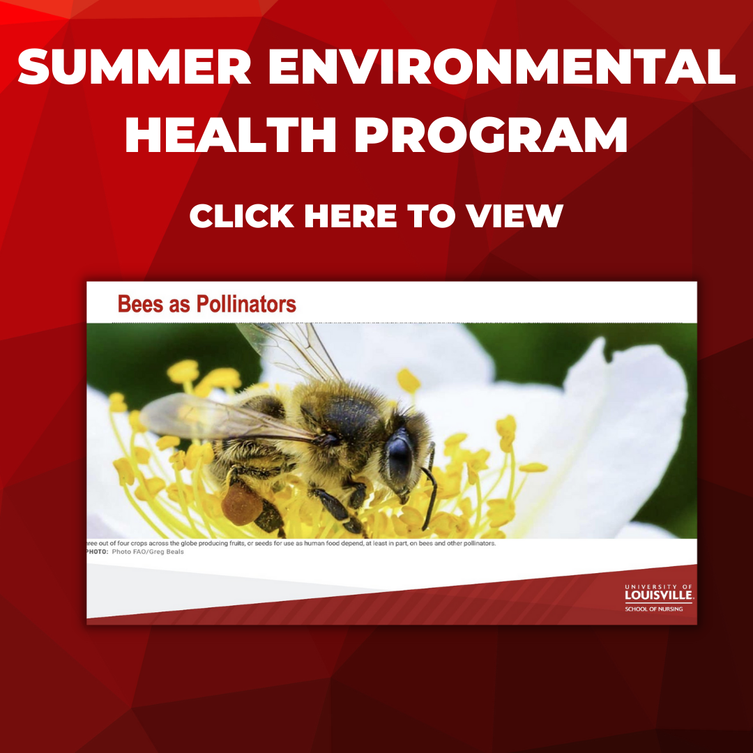 Summer environmental health tile that states "summer environmental health program, click here to view" featuring a screen shot from an event over the summer