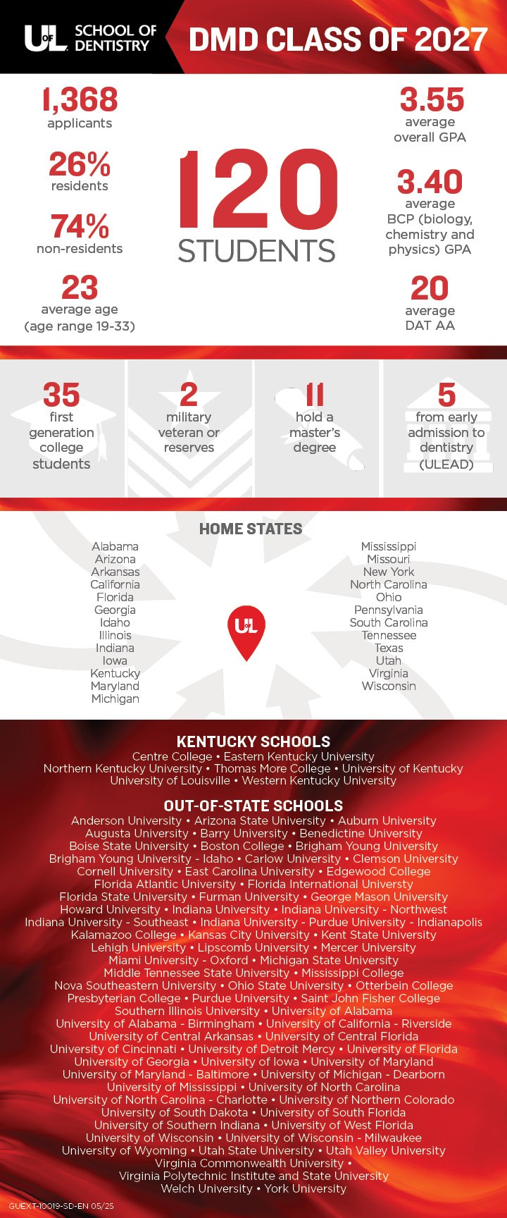 Although the characteristics of a given class change from year to year, the information below depicts the profile of the entering class from the previous year: