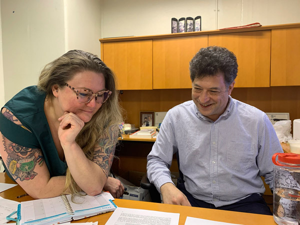 Erika Figgins and Gill Diamond reviewing data