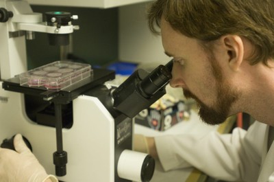Graduate Student with Microscope