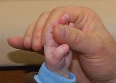 Big hand holding small hand