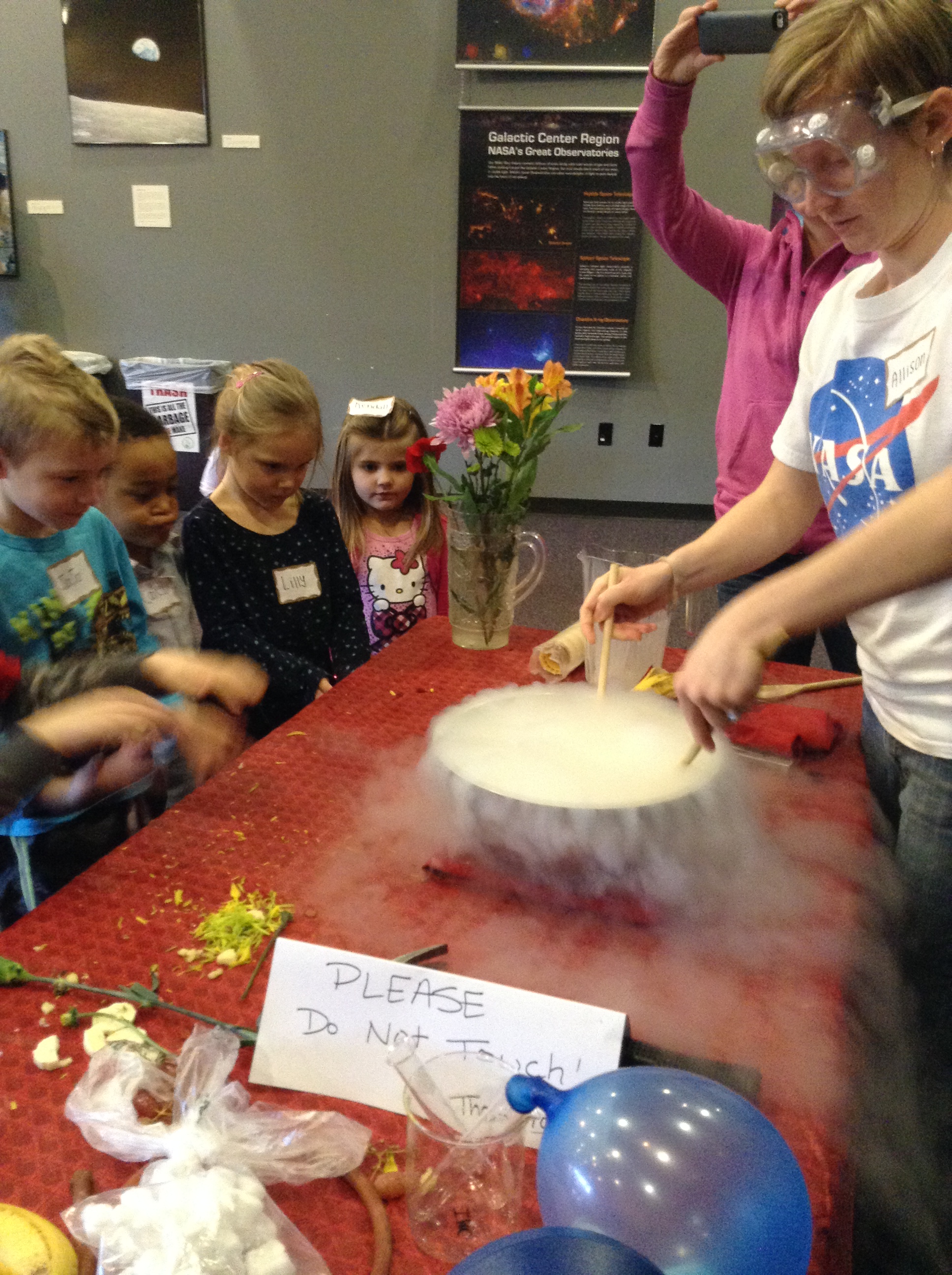 Kids watching liquid nitrogen experiment