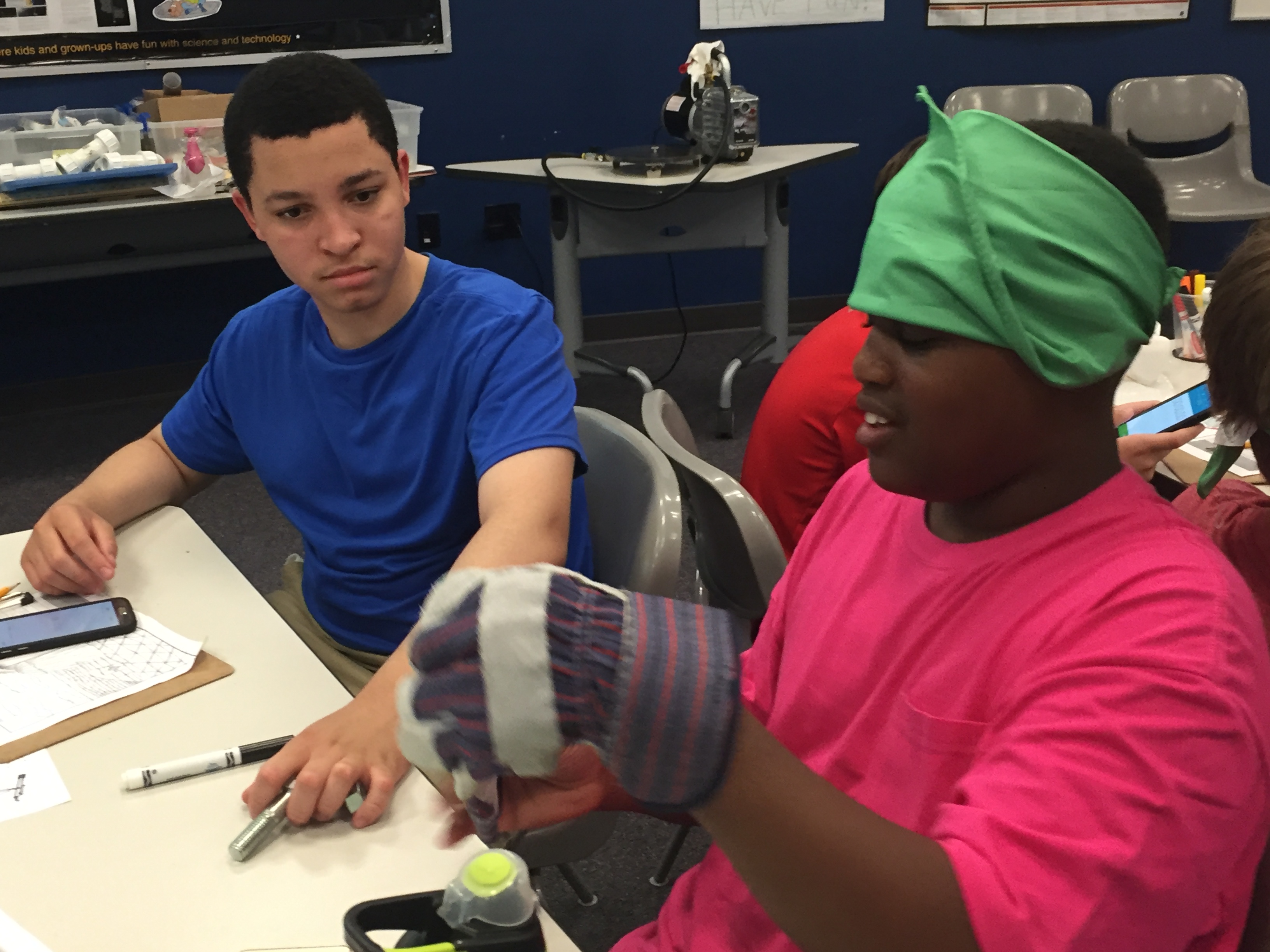 Sensory deprivation exercise with kids using gloves and blindfolds