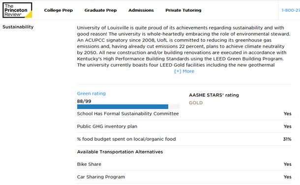 2018 Princeton Review Guide to Green Colleges - UofL Listing
