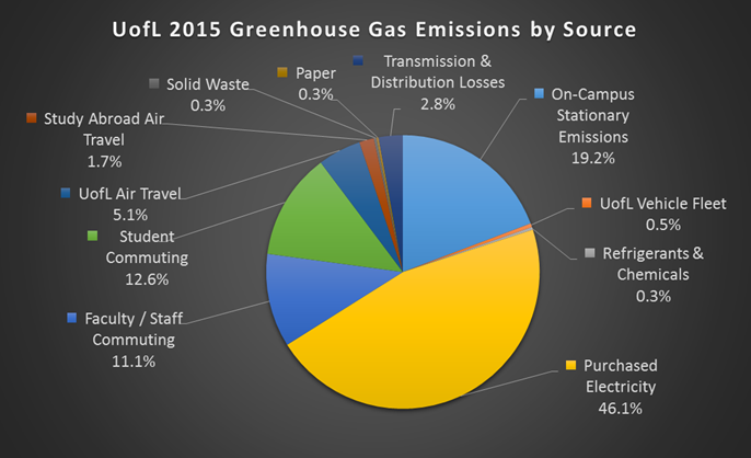 UofL Greenhouse Gas Emissions by Source 2015