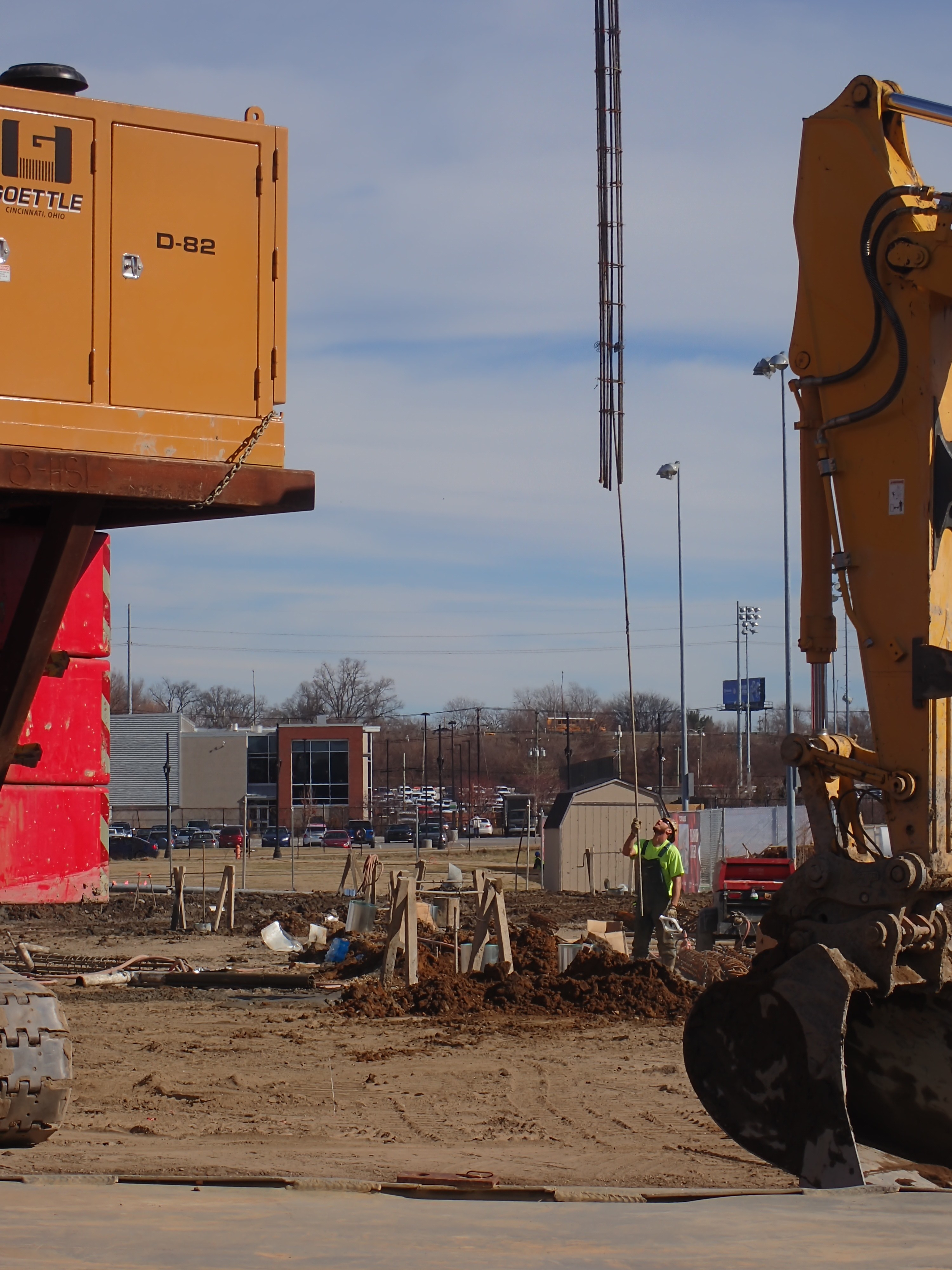 Worker installing geothermal well at New Engineering Building