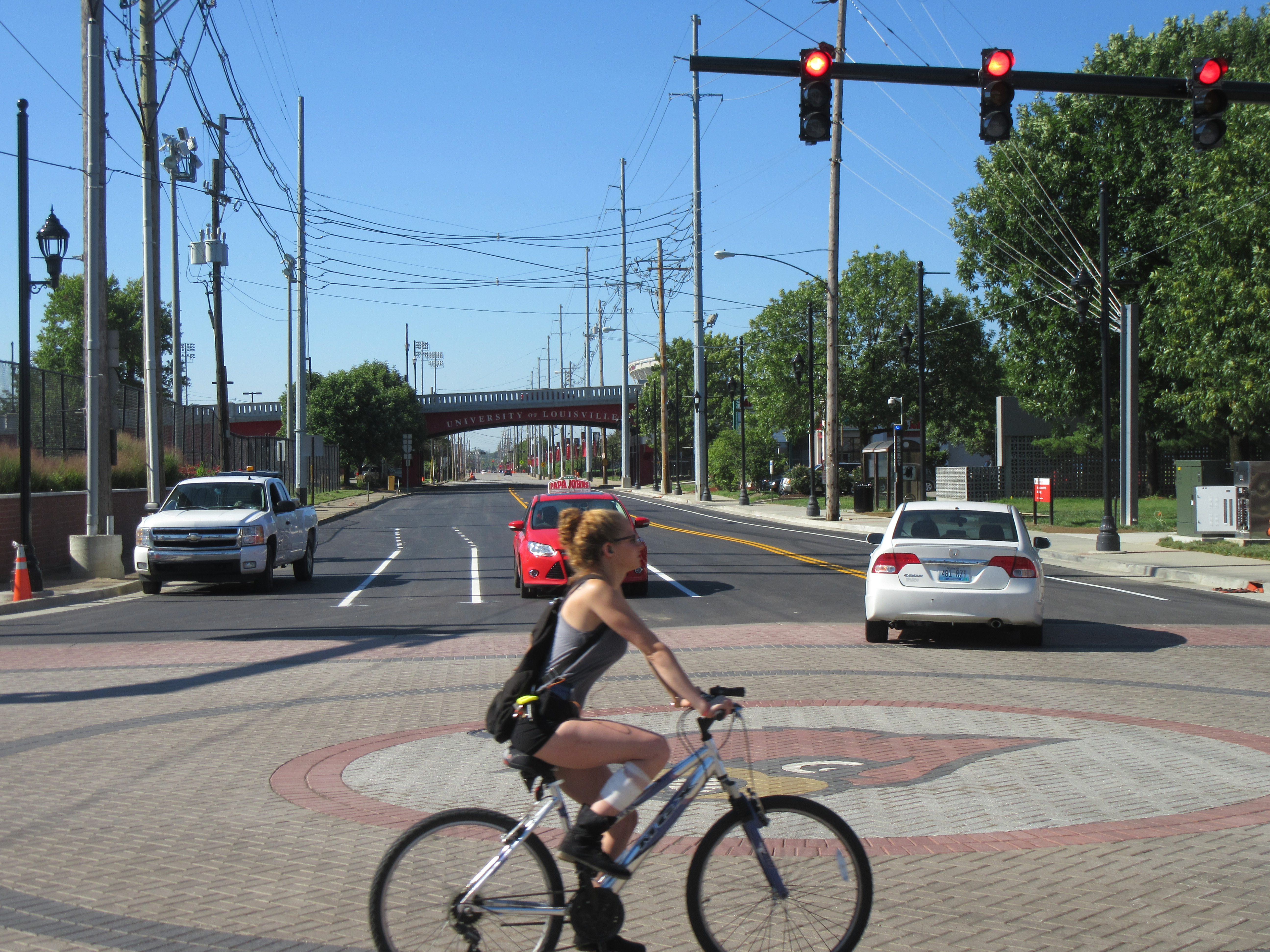 Student uses New Bike Lanes at Warnock+Brook (Summer 2015)